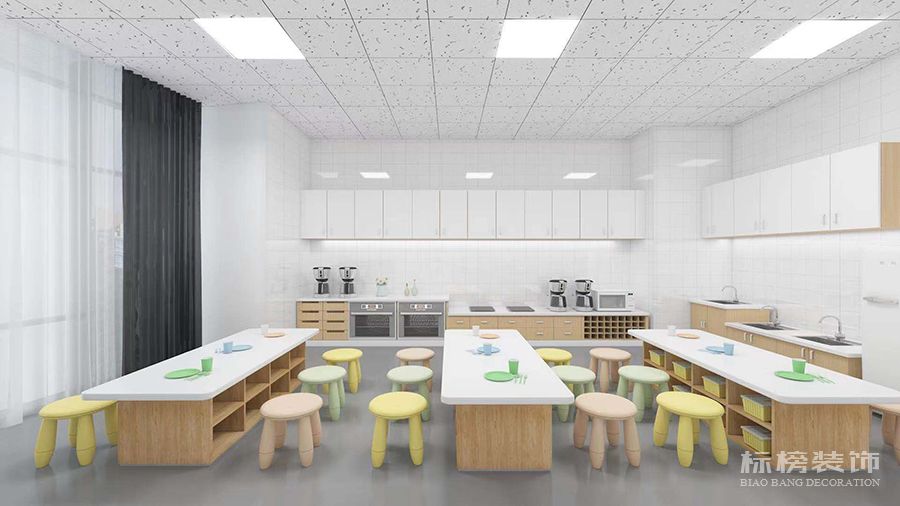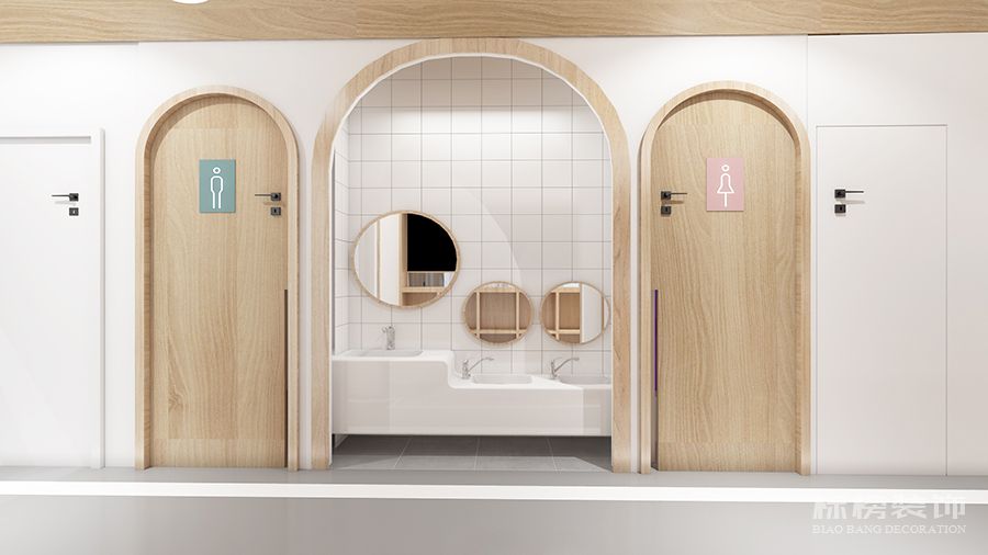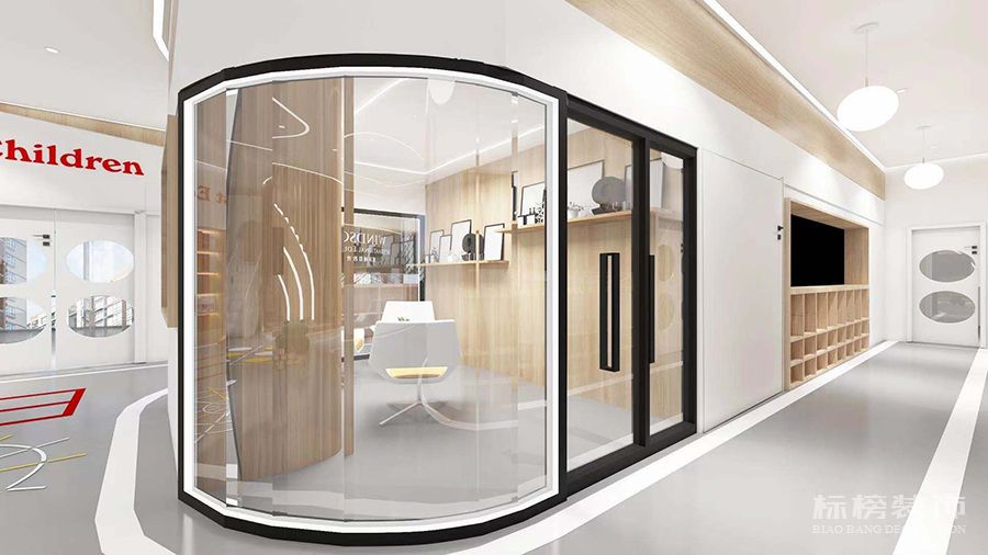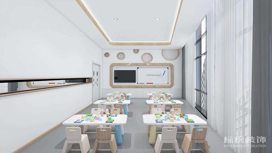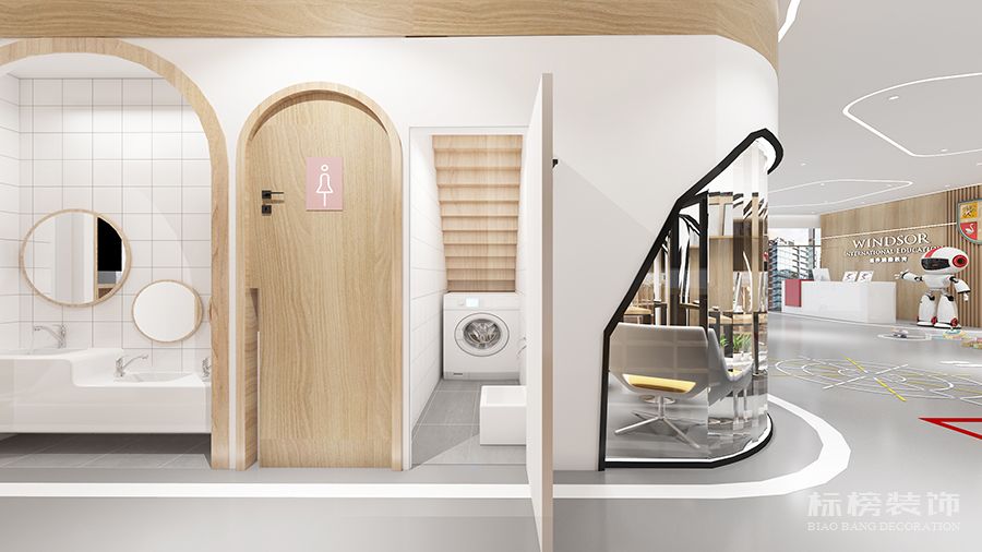 整體為比較純凈的白色和松木色為主,地板則選用灰色耐臟的色號,合理的色彩搭配再加上適合的空間結構為老師學生帶來歡快的環境縈繞,同時使家長在進入機構時不會覺得過于擁擠雜亂,給家長留下優秀的第一映像。